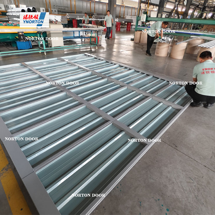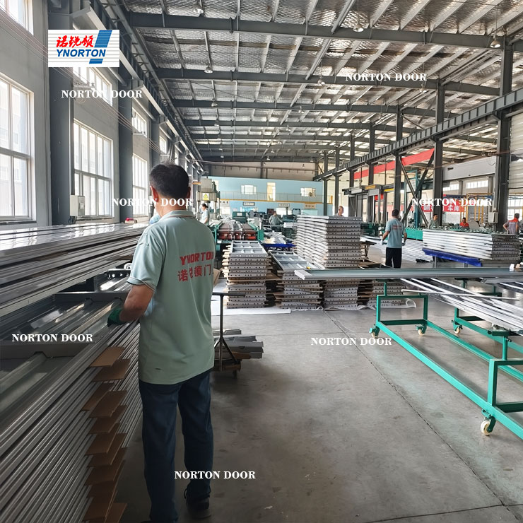 Léirigh Qingdao Norton Door Technology Co, Ltd a neart láidir agus a shaothrú gan cháilíocht ar cháilíocht i réimse an táirgthe dorais gharáiste lena cheardlann táirgthe 7000 méadar cearnach. Ní hamháin go soláthraíonn ceardlann den scála seo bunús láidir do phróiseas táirgthe éifeachtach agus ordúil, ach cinntíonn sé freisin gur féidir gach nasc ó sholáthar amhábhar go seachadadh táirge críochnaithe a bhainistiú agus a rialú go mín.